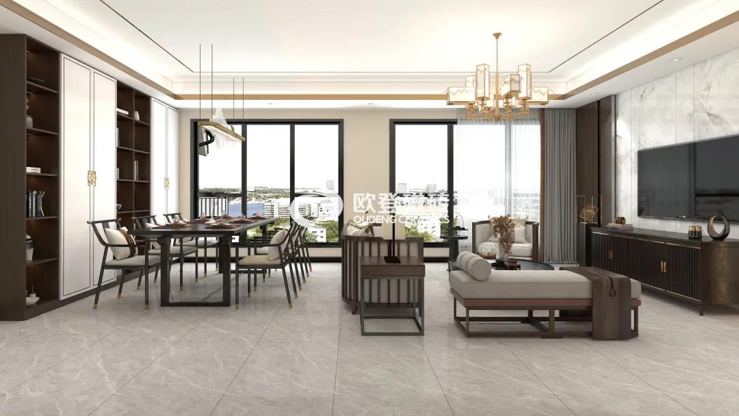 在这个空间中,德赫尼灰带来了经典时尚的感觉。实木家具充满禅意,而又搭配金属元素的灯饰,实现古典与时尚的碰撞,让整个空间充满了新中式风格的质感。